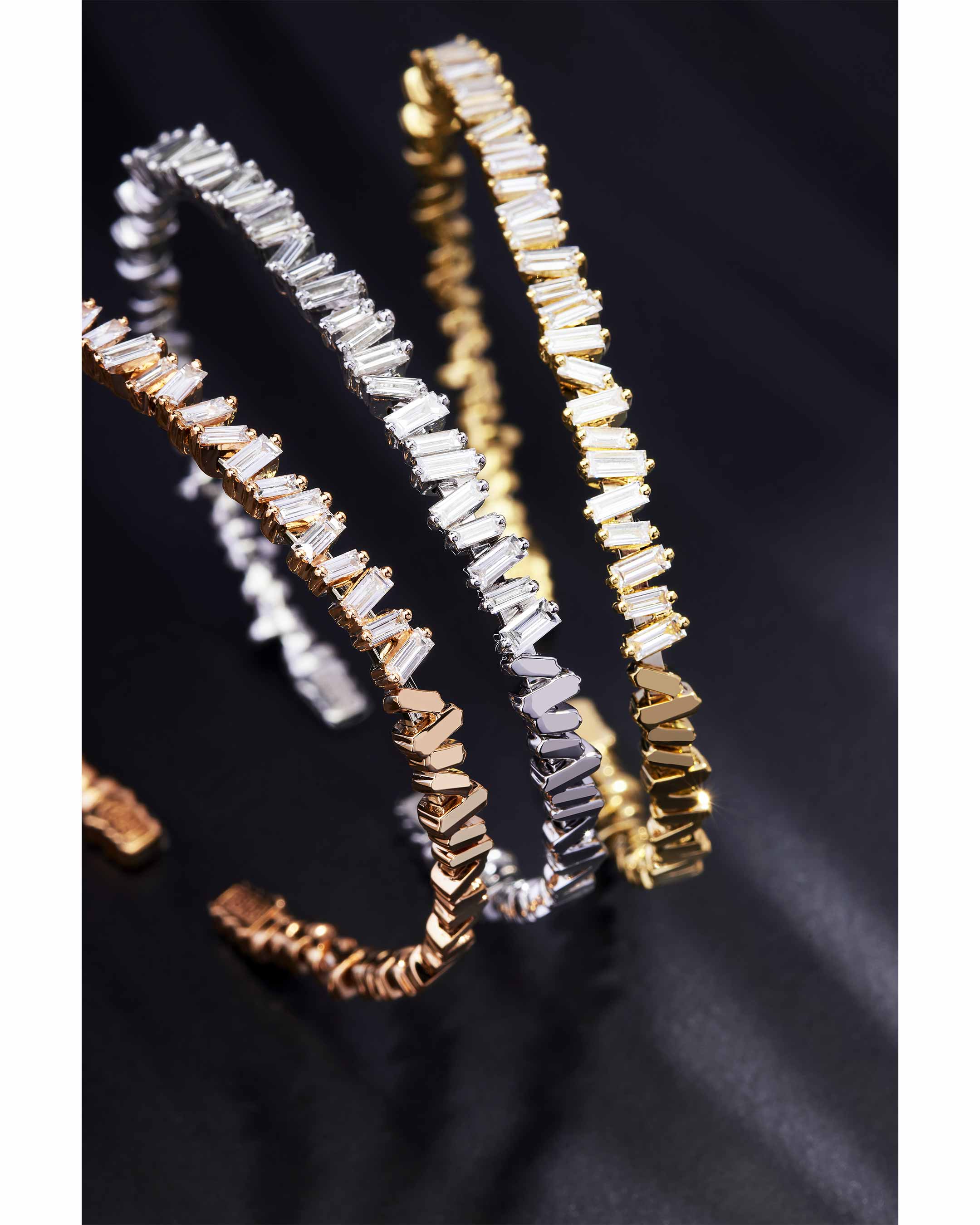 This unique piece did not just create ripples; it made waves. Paving the way for the now-iconic Classic Diamond Fireworks Collection, the bangle has inspired an entire line that includes tennis necklaces, tennis bracelets, and much more. Demonstrating its timeless allure, the collection remains a central highlight of the Suzanne Kalan brand, consistently captivating new admirers and maintaining its position as a beloved classic.