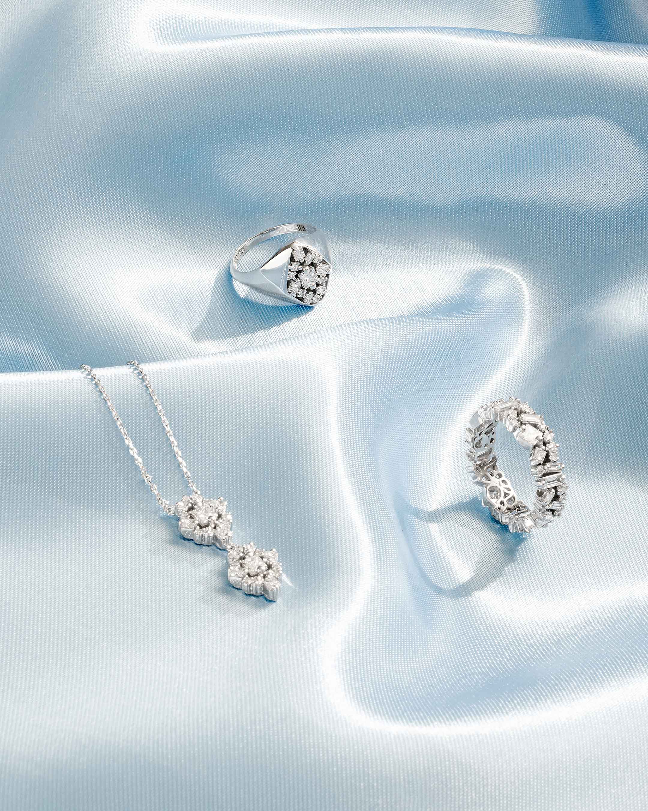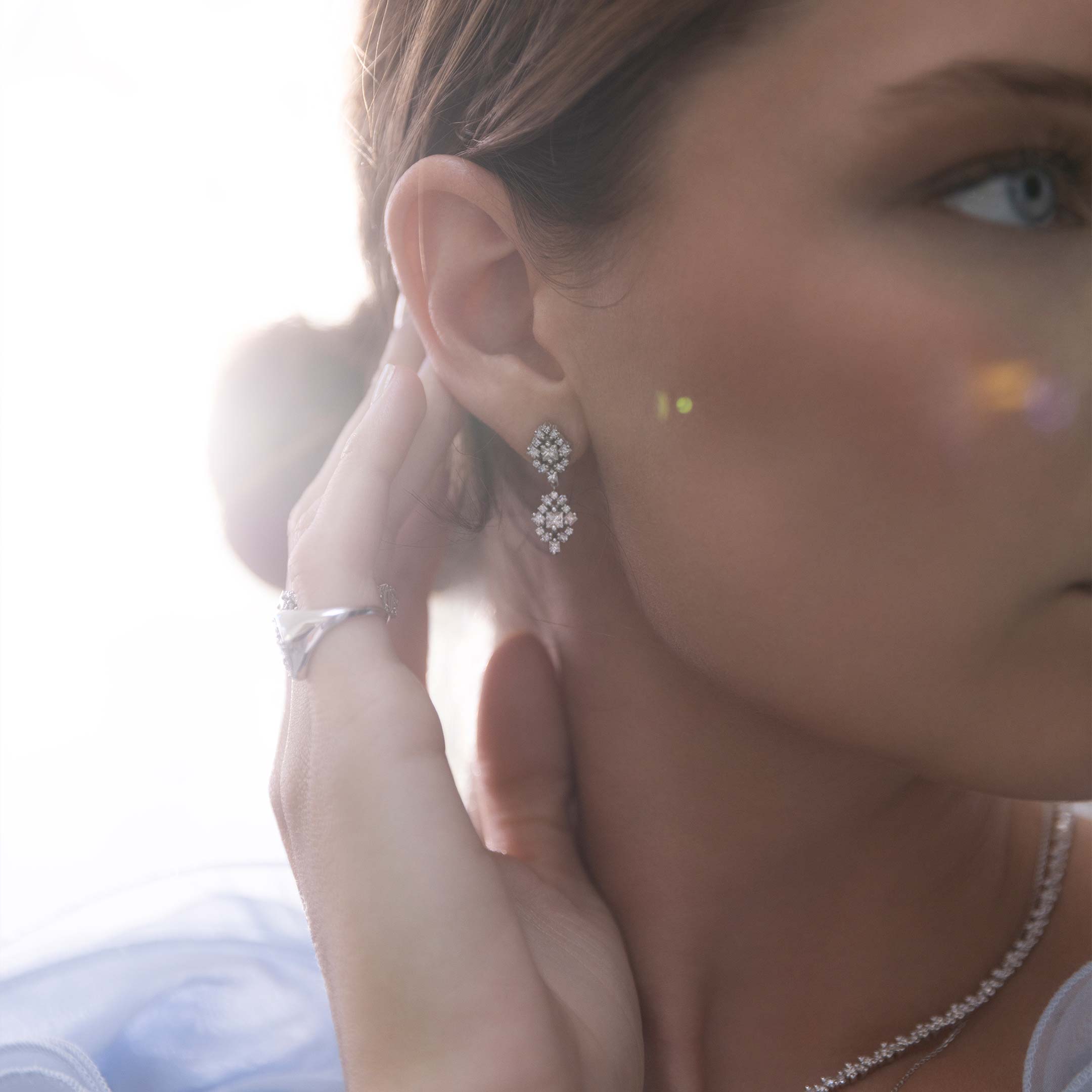 To achieve this feeling, Suzanne used 18K gold to create delicate, cloud-like shapes that resemble fluffy cumulus clouds. These shapes are then embellished with beautiful princess cut diamonds and sapphires, which sparkle like stars in the sky.